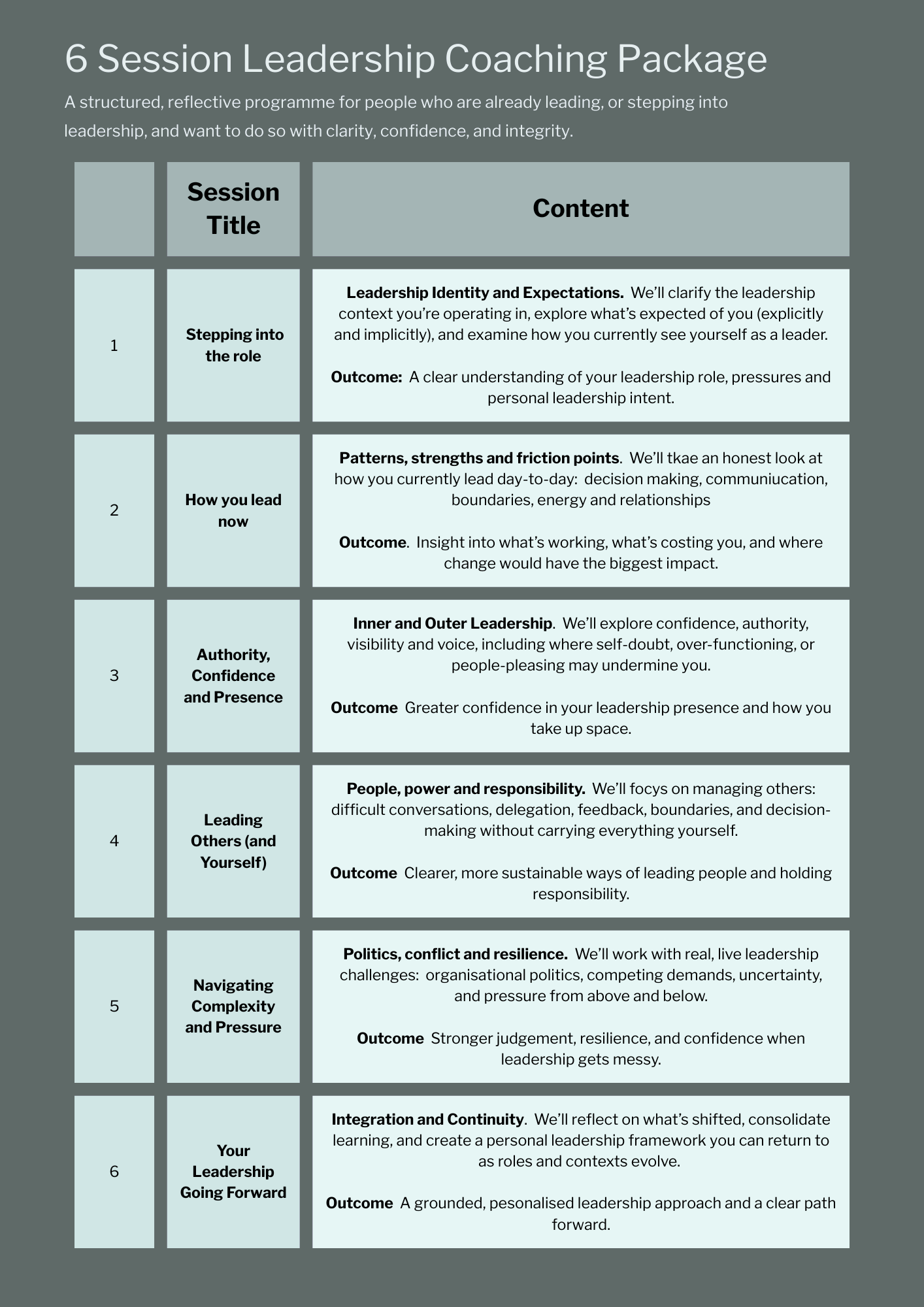 Leadership coaching is a space to pause, reflect, and strengthen how you lead in the real world. It’s for people who are already carrying responsibility, making decisions, and navigating complexity, but who want to do so with greater clarity, confidence, and sustainability. Rather than focusing on career moves or job changes, leadership coaching looks at how you show up day to day: your judgement, presence, boundaries, and the impact you have on others.